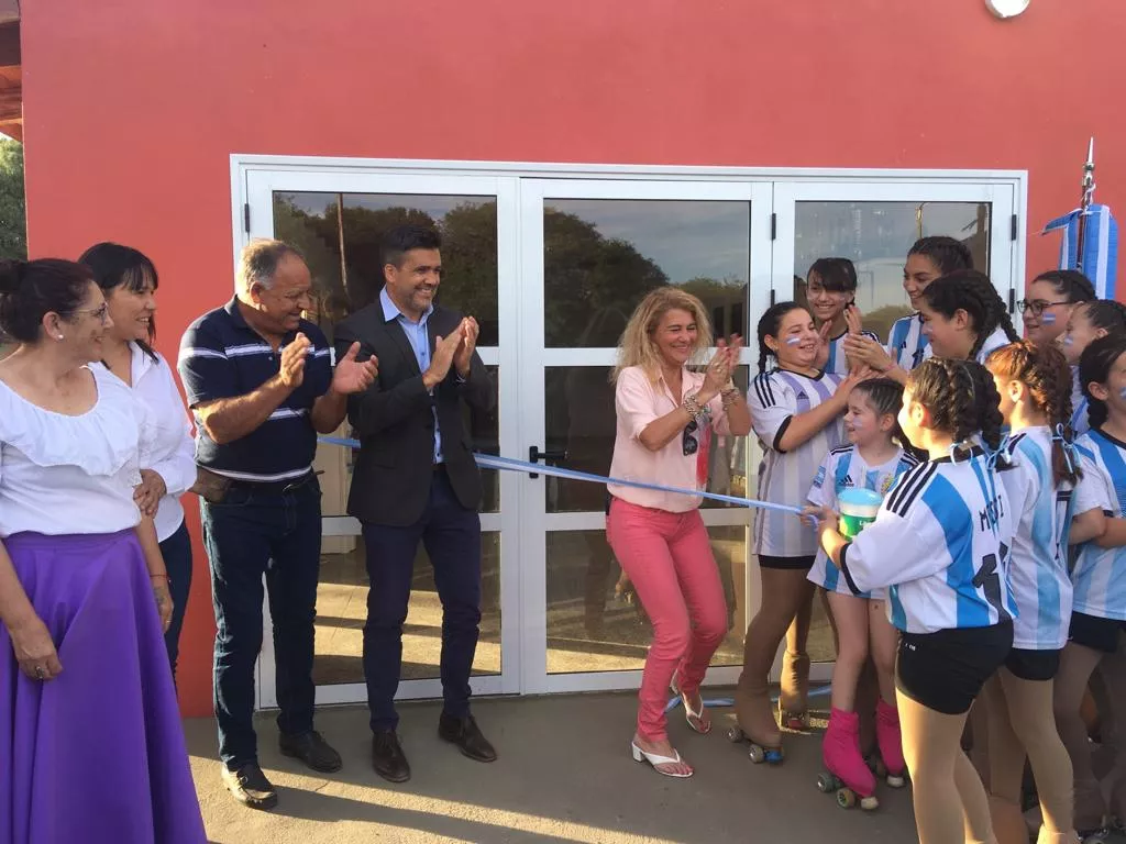 (Sumario Noticias; Villa La Bolsa) La Presidente Comunal Verónica Diedrich y el ministro Facundo Torres Lima encabezaron este martes la inauguración de la puesta en valor del Polideportivo de Villa La Bolsa, en un acto que contó con danzas folklóricas, destrezas en patín, música y hasta pata flambeada.