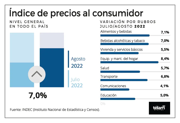 En este último caso la suba fue explicada por el fuerte incremento los precios de la Carne y derivados, y de Pan y cereales.