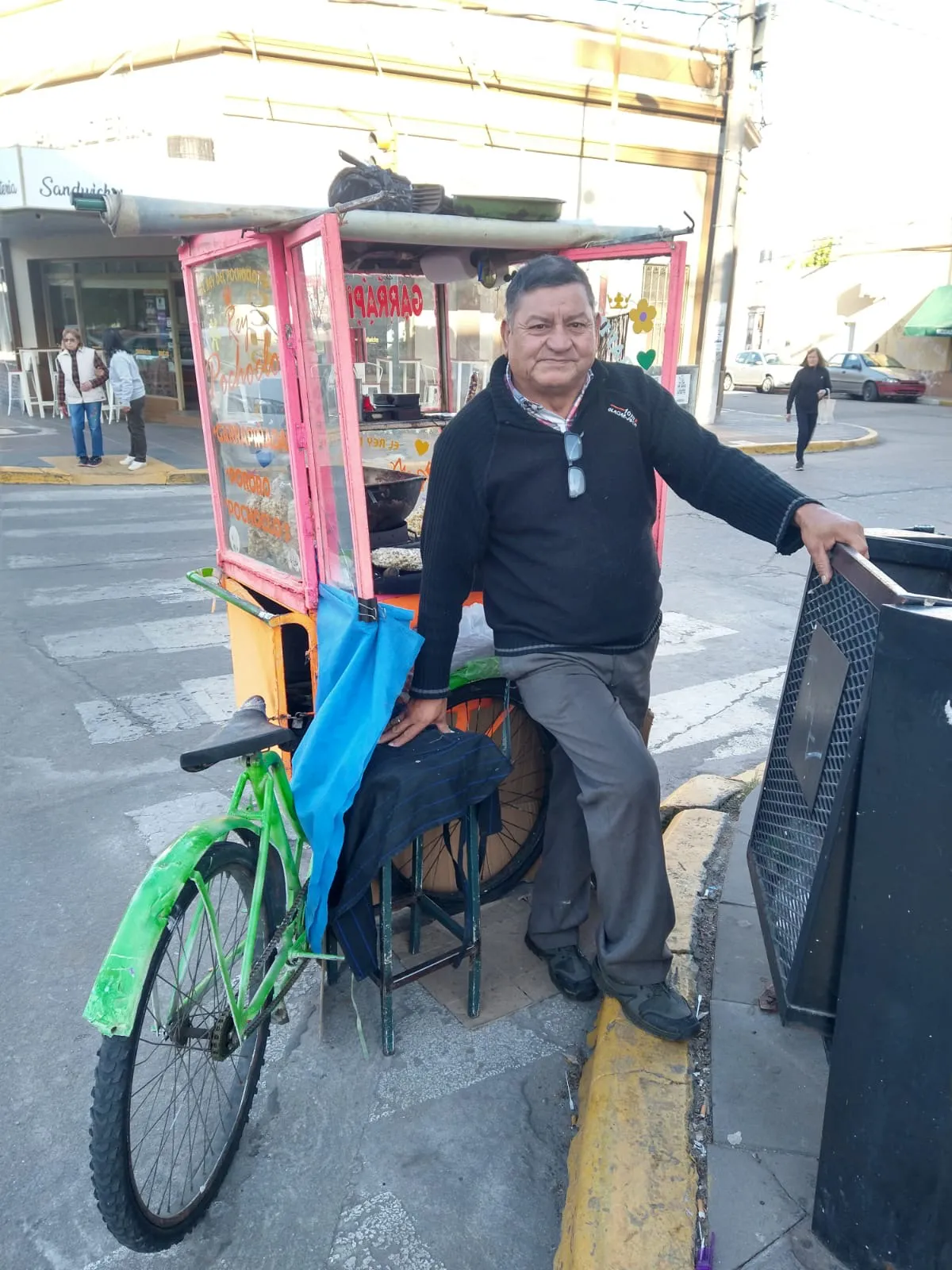 La pandemia fue un tiempo muy difícil para Juan, no sólo por el hecho de no poder vender en la calle, sino porque extrañaba muchísimo el contacto con la gente y con los comerciantes de la zona. Durante ese tiempo cuenta que cayó en una profunda depresión, hasta que de a poco salió y, con la apertura de algunas restricciones, regresó con el carrito a su esquina tan amada.