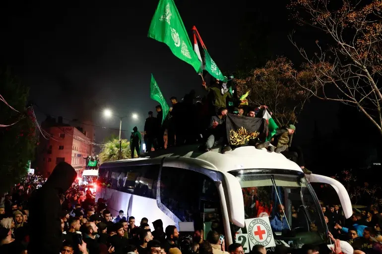 Alrededor de la 1 de la madrugada hora local del lunes (23:00 GMT), los autobuses de la Cruz Roja que transportaban a los 90 prisioneros palestinos llegaron a Ramallah, en la Cisjordania ocupada, donde fueron recibidos por multitudes de miles de personas a pesar de las advertencias de las fuerzas israelíes de que no se permitirían celebraciones.