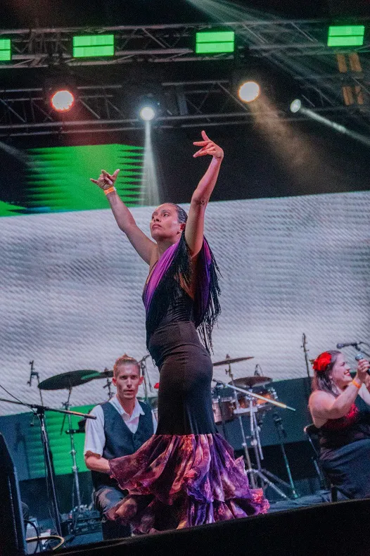 El movimiento en las carpas gastronómicas, patios de comida, ferias y espacios culturales fue constante durante toda la noche. En el escenario Milo Morcillo, los ballets de Andalucía, Polonia, Colombia y el ballet Taiko brindaron espectáculos con el color y la tradición de sus danzas.