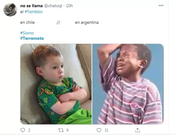 El terremoto se convirtió en trending topic . Ante esto, una gran cantidad de chilenos aprovecharon la oportunidad para tomárse con humor la reacción de los argentinos ante el sismo y estallaron los memes y comentarios.